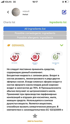 Ключевые ингредиенты бренд может добавить (изменить) после прохождения процедуры верификации. Наш алгоритм автоматически выбирает 20 ингредиентов которые бренд использует в своих продуктах. Методика выборки - 10 ингредиентов с самым высоким значением эффективности и 10 ингредиентов с самым высоким значением риск фактора.