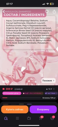 - Натуральности ингредиентного состава;