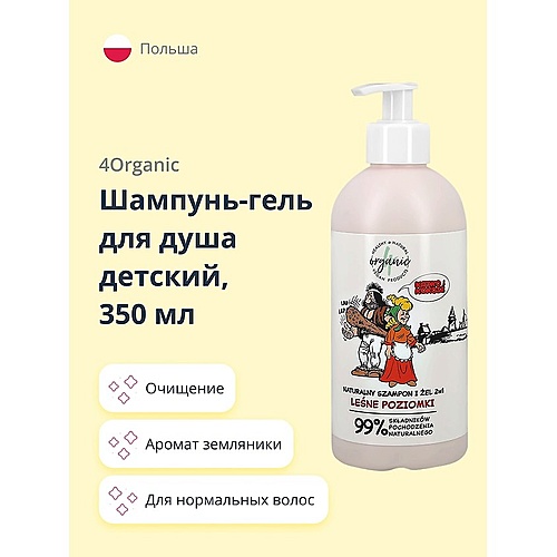 Волосы: Шампунь : 4ORGANIC Шампунь-гель для душа детский 2 в 1 Лесная земляника