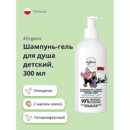 Волосы: Шампунь : 4ORGANIC Шампунь-гель для душа детский с маслом кокоса