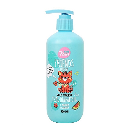 Волосы: Шампунь : 7DAYS Детский шампунь-гель для душа 2 в 1 с медом и дыней WILD TIGER-R-R FRIENDS FOREVER