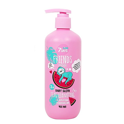 7DAYS FRIENDS FOREVER Шампунь-гель детский 2 в 1 без слез с арбузом и ананасом BABY SLOTH, 3+ - Разбор состава