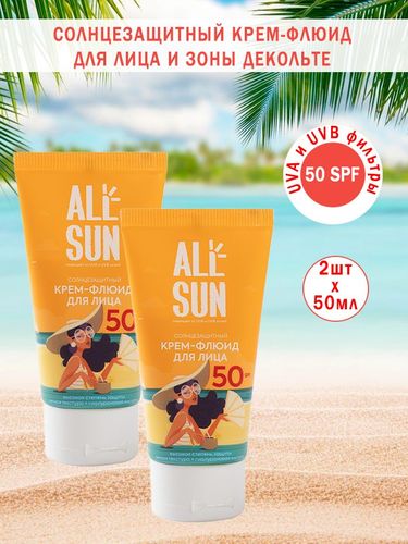 Allsun Крем-флюид солнцезащитный для лица и декольте SPF-50 50мл, 2шт - Разбор состава