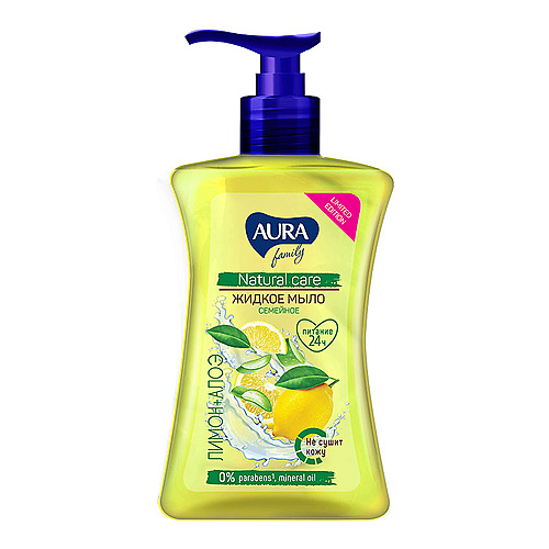 Лицо: Снятие макияжа, Очищение : AURA FAMILY Семейное жидкое мыло Лимон и алоэ LIMITED EDITION