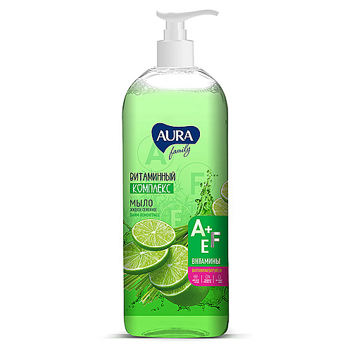 Лицо: Снятие макияжа, Очищение : AURA FAMILY Семейное жидкое мыло с витаминным комплексом Лайм и лемонграсс