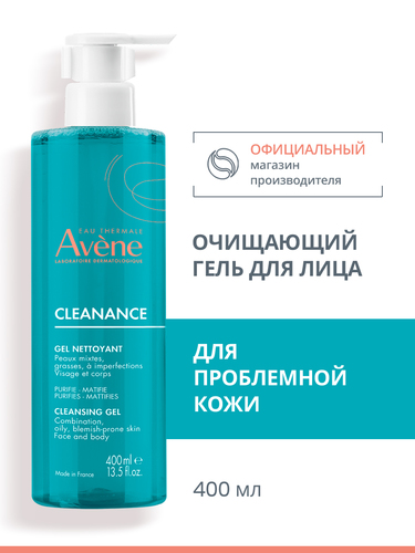 AVENE CLEANANCE Очищающий матирующий гель, Авен Клинанс 400 мл, для лица и тела, для умывания, для проблемной и жирной кожи, склонной к акне - Разбор состава