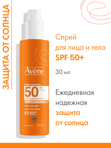 Тело: SPF кремы, гели, лосьоны, прочее : Avene Невидимый солнцезащитный спрей для чувствительной кожи SРF 50 200 мл