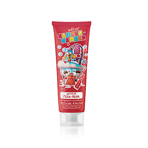 Тело: Мыло, гель/душа, лосьон, молочко : БЕЛИТА Каляки-Маляки Гель-пена для купания и рисования "Веселые краски" красная