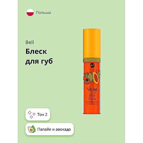 Make-up губы: Помада, блеск, бальзам : BELL Блеск для губ VEGE с экстрактом папайи и авокадо