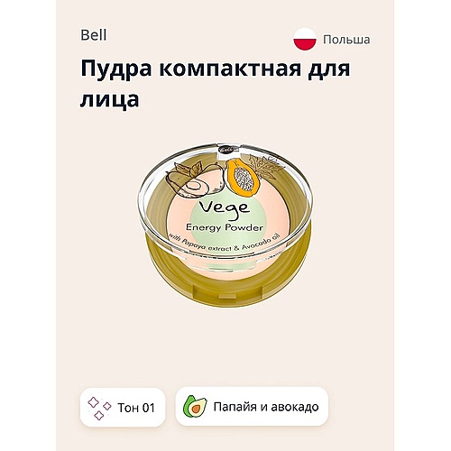 BELL Пудра компактная для лица VEGE с экстрактом папайи и авокадо - Разбор состава