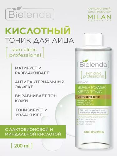 BIELENDA Тоник для лица для проблемной кожи, Миндальная и Лактобионовая кислота, "SKIN CLINIC PROFESSIONAL", 200 мл. - Разбор состава