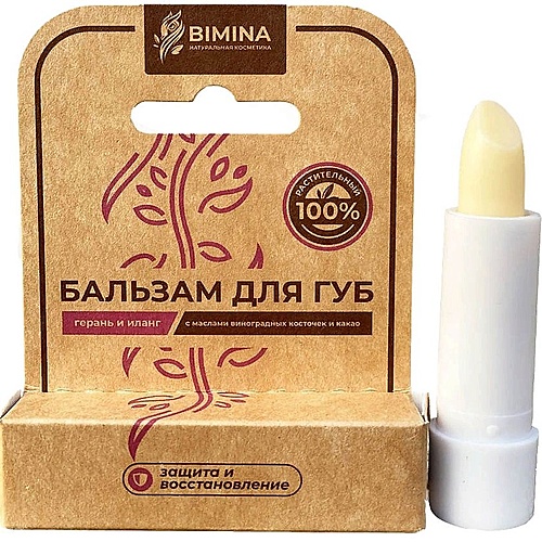 BIMINA Бальзам для губ герань+иланг с маслами виноградовых косточек и какао - Разбор состава