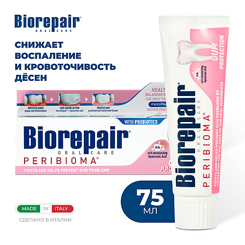 BIOREPAIR Зубная паста Biorepair Peribioma Gum Protection для защиты десен, 75 мл - Разбор состава