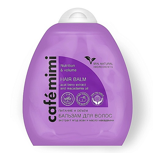 CAFÉ MIMI Бальзам для волос "Питание и Объем" экстракт ягод асаи и масло макадамии - Разбор состава