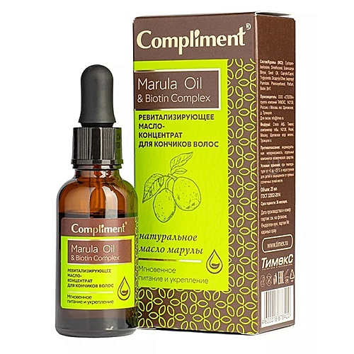 COMPLIMENT Ревитализирующее масло-концентрат для кончиков волос Marula Oil & Biotin Complex - Разбор состава