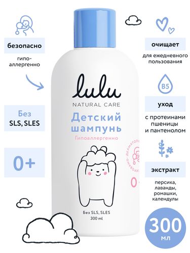 Детский шампунь LULU для купания новорожденных 0+ (300 мл.) бессульфатный шампунь натуральный для детей - Разбор состава