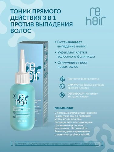 ESTEL PROFESSIONAL Тоник прямого действия 3в1 reHAIR против выпадения волос, для укрепления волосяного фолликула, 100 мл - Разбор состава