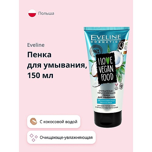 Лицо: Снятие макияжа, Очищение : EVELINE Пенка для умывания I LOVE VEGAN FOOD очищающе-увлажняющая