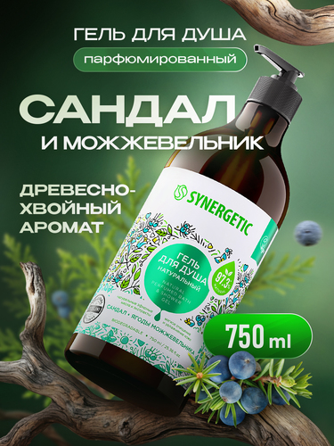 Тело: Мыло, гель/душа, лосьон, молочко : Гель для душа SYNERGETIC "Сандал и ягоды можжевельника" 750мл