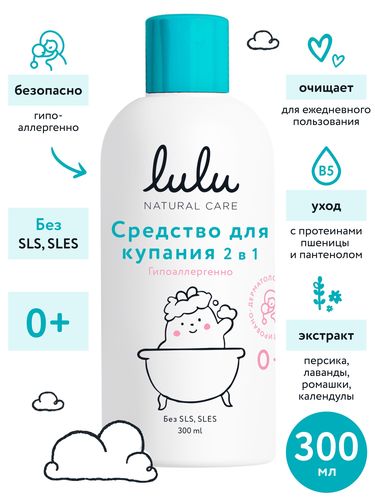 Гель для подмывания младенцев LULU и шампунь детский 0+ (300 мл.) 2в1 Средство для купания новорожденных - Разбор состава