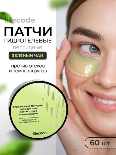 Гидрогелевые патчи для глаз lifecode с экстрактом зеленого чая - против отеков и мешков под глазами, 60 шт, антивозрастные - Разбор состава