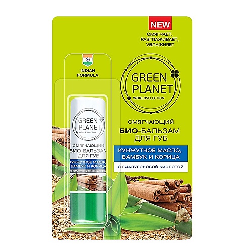 Губы: Уход : GREEN PLANET БИО-бальзам для губ смягчающий Кунжутное масло, бамбук и корица