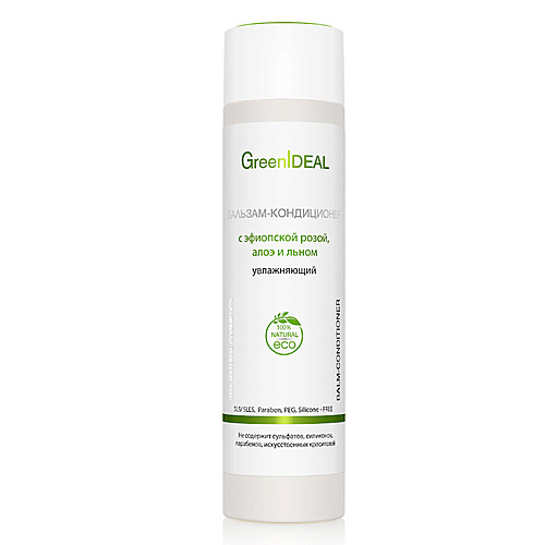 GREENIDEAL Бальзам-кондиционер увлажняющий с эфиопской розой, алоэ, льном (натуральный) - Разбор состава
