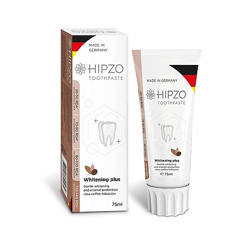 HIPZO Зубная паста ВАЙТЕНИНГ ПЛЮС безопасное отбеливание и защита эмали Чай-Кофе-Табак Векерле - Разбор состава