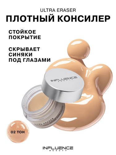 INFLUENCE BEAUTY Консилер для лица Ultra Eraser, кремовый, плотный, стойкое покрытие, тон 02, бежевый, 6,5 г - Разбор состава