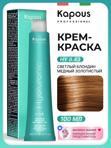 KAPOUS Крем-Краска HYALURONIC ACID 8.43 с гиалуроновой кислотой для волос, Светлый блондин медный золотистый, 100 мл - Разбор состава