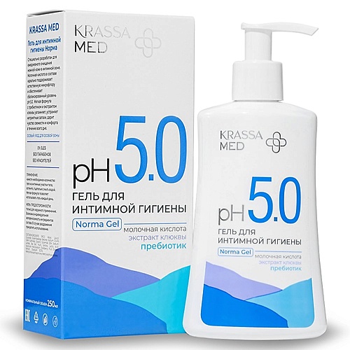 Тело: Интимная гигиена : KRASSA MED Гель для интимной гигиены NORMA Бессульфатныйс Пробиотиком и Молочной Кислотой