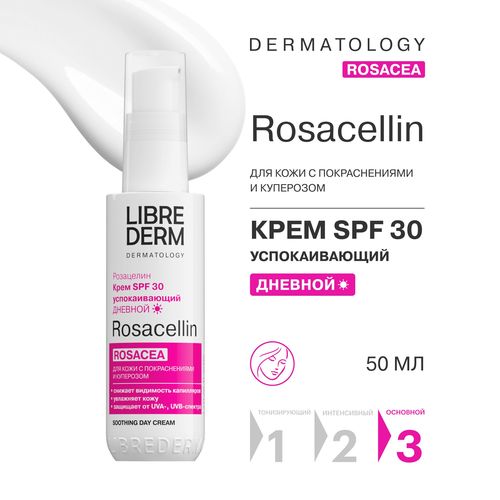 LIBREDERM ROSACELLIN / РОЗАЦЕЛИН Дневной успокаивающий крем для кожи лица с покраснениями и куперозом SPF 30, 50 мл - Разбор состава