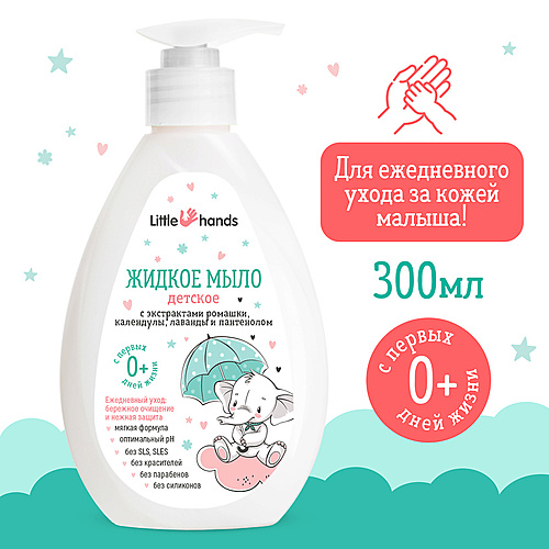 Лицо: Снятие макияжа, Очищение : LITTLE HANDS Жидкое мыло детское с экстрактами лаванды, календулы, ромашки и пантенолом