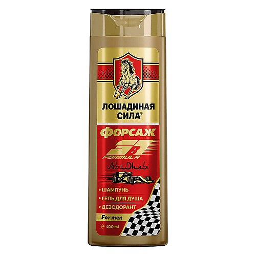 Волосы: Шампунь : ЛОШАДИНАЯ СИЛА Шампунь-гель для душа дезодорирующий 3в1 «Формула Форсаж Абу-Даби»