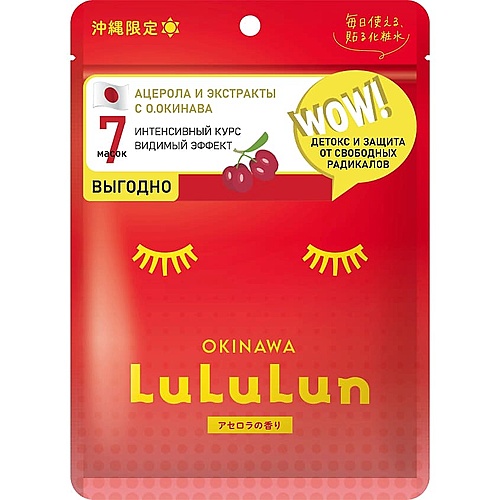 LULULUN Набор из 7 масок для лица увлажняющая и улучшающая цвет лица «Ацерола с о. Окинава» Premium Face Mask Acerola 7 - Разбор состава