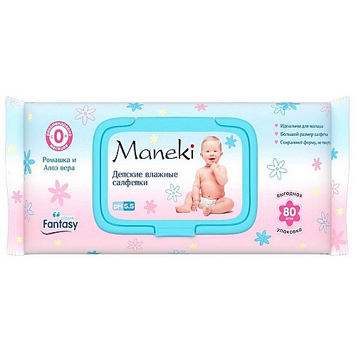 MANEKI Влажные салфетки Fantasy детские с экстрактом Ромашки и Алоэ Вера - Разбор состава