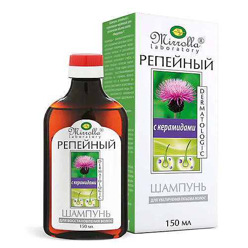 Волосы: Шампунь : MIRROLLA Шампунь репейный с комплексом керамидов для увеличения объема волос