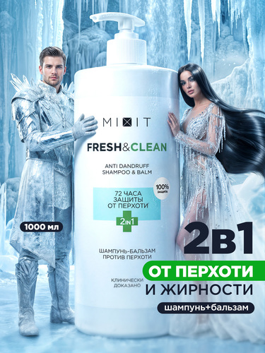 Волосы: Шампунь : MIXIT Шампунь для волос 2 в 1 против перхоти с ментолом 1000мл. Профессиональный увлажняющий уход за кожей головы Fresh Clean