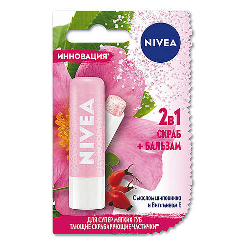 Губы: Уход : NIVEA Скраб + Бальзам с маслом шиповника Витамином E