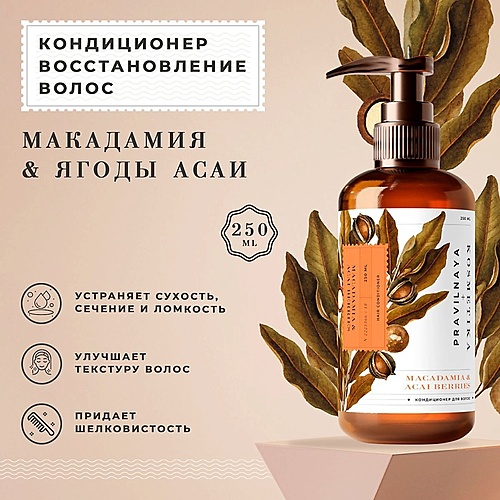P+K PRAVILNAYA KOSMETIKA Увлажняющий кондиционер для восстановления волос Макадамия & Ягоды асаи - Разбор состава