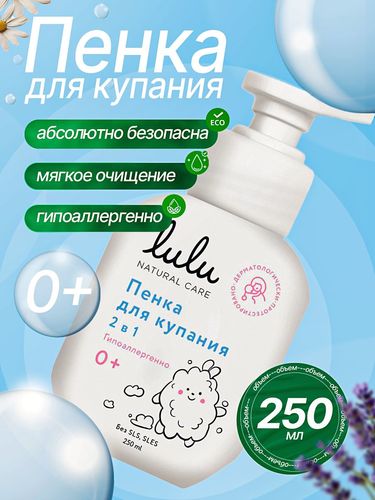 Пенка для купания 2 в 1, гипоаллергенная для ежедневного ухода, LULU, 250 мл - Разбор состава