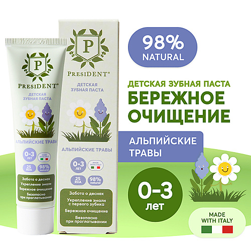 PRESIDENT Детская зубная паста Альпийские травы 0-3 (RDA 25) - Разбор состава