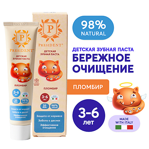 PRESIDENT Детская зубная паста Пломбир 3-6 (RDA 50) - Разбор состава
