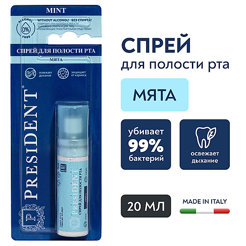 Зубы: Паста, порошок, полоскание : PRESIDENT Спрей для полости рта "mint" со вкусом мяты без спирта
