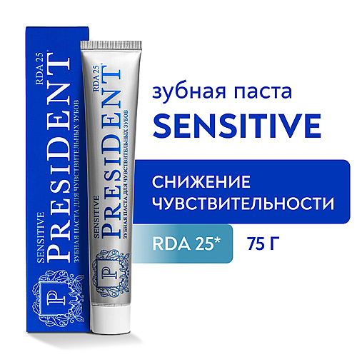 Зубы: Паста, порошок, полоскание : PRESIDENT Зубная паста Sensitive (RDA 25)