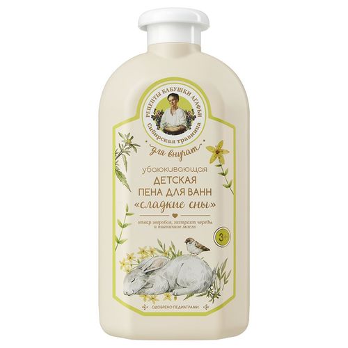 ! Неизвестный тип продукта : Рецепты бабушки Агафьи Пена для ванн детская увлажняющая и убаюкивающая Сладкие сны Для внучат 3+ 500мл
