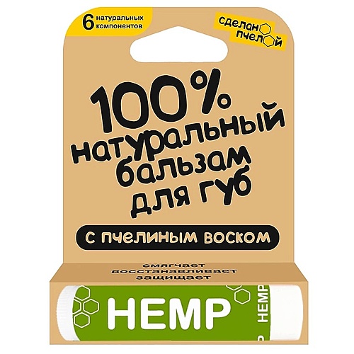 СДЕЛАНОПЧЕЛОЙ 100% натуральный бальзам для губ с пчелиным воском "HEMP" - Разбор состава