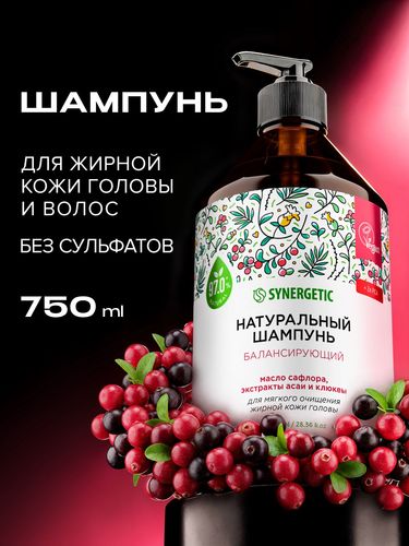 Волосы: Шампунь : Шампунь для волос женский SYNERGETIC Балансирующий для мягкого очищения жирной кожи головы, 750 мл