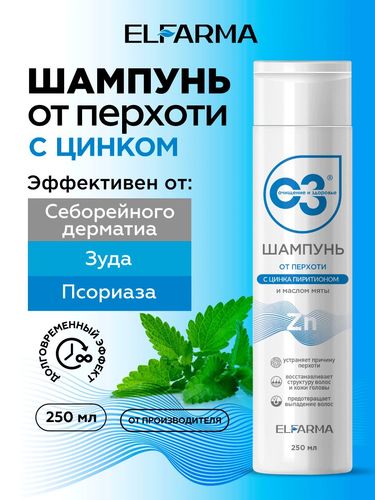 Шампунь от перхоти с цинка пиритионом,Elfarma/ от себореи, от псориаза, для мужчин, для женщин, 250 мл - Разбор состава