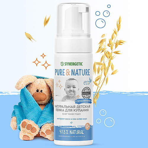 SYNERGETIC Натуральная гипоаллергенная детская пенка для купания 0+ - Разбор состава